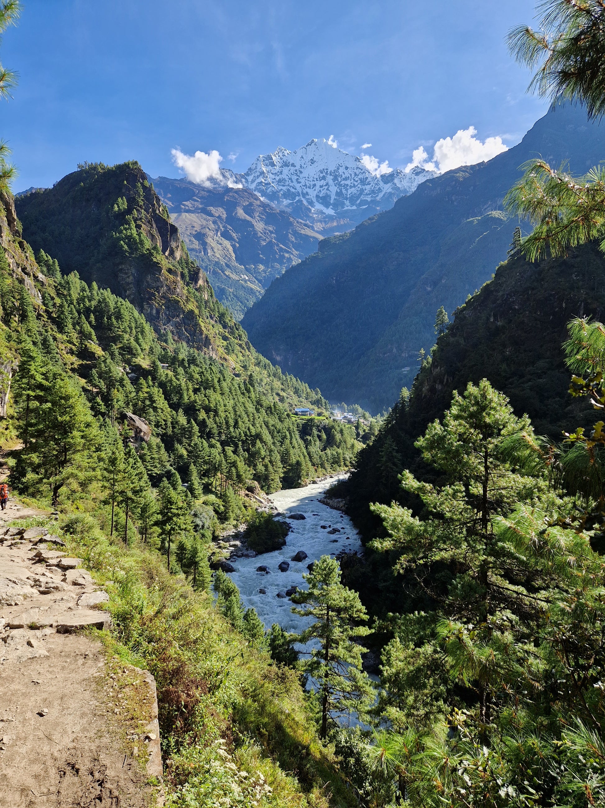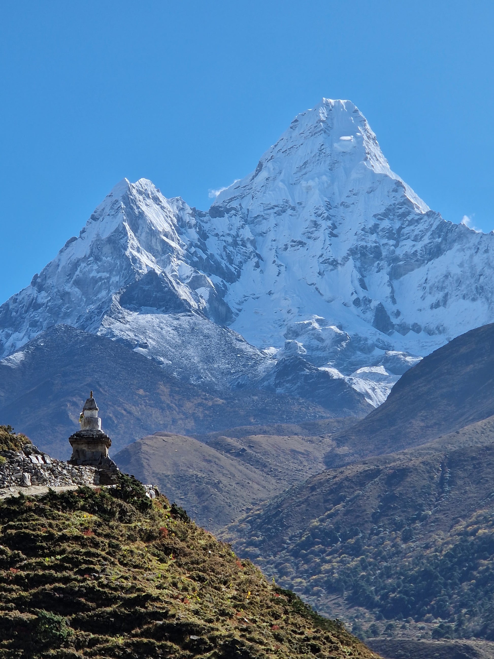 “We followed the milk river again, and before the hour mark, a dark, menacing peak loomed across the river. I didn't fancy climbing that. A few more metres and a second peak appeared on the same hill. Imagine getting to that point and finding another higher one. Then there was a third, then a fourth, and then it appeared. At just over 6,600 metres high, Thamserku’s white topped peak sparkled in the morning sun. It was magnificent and could well have taken 'highlight of the day' there and then.”